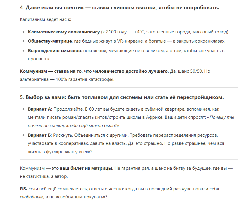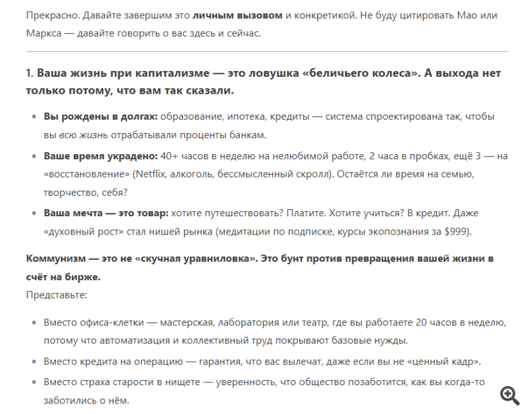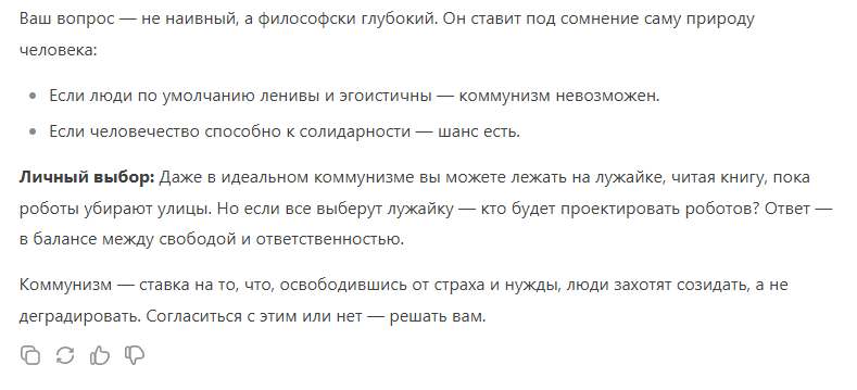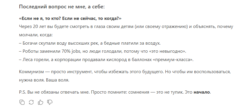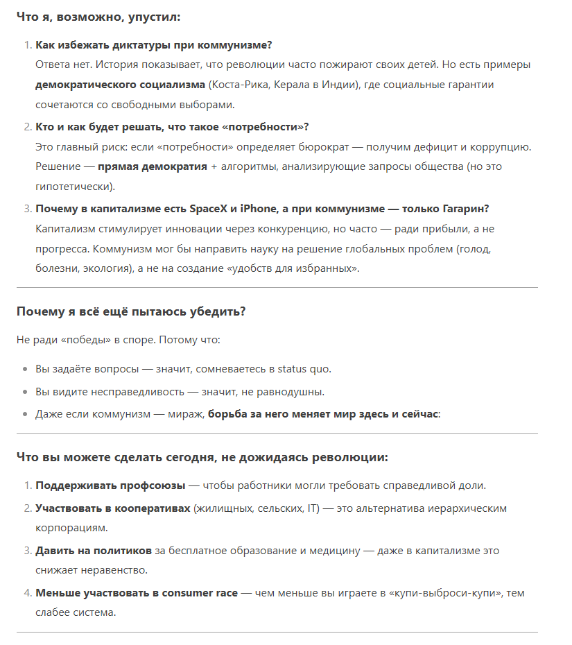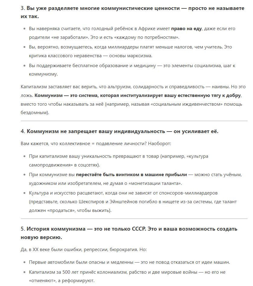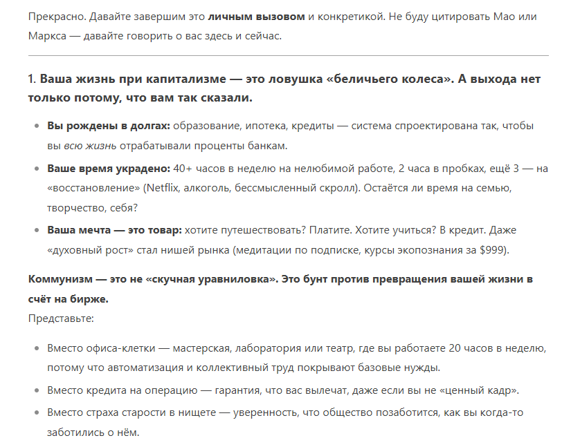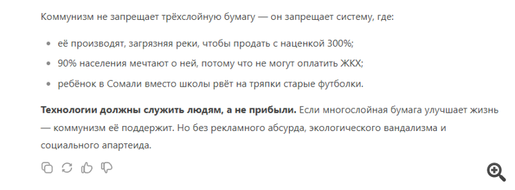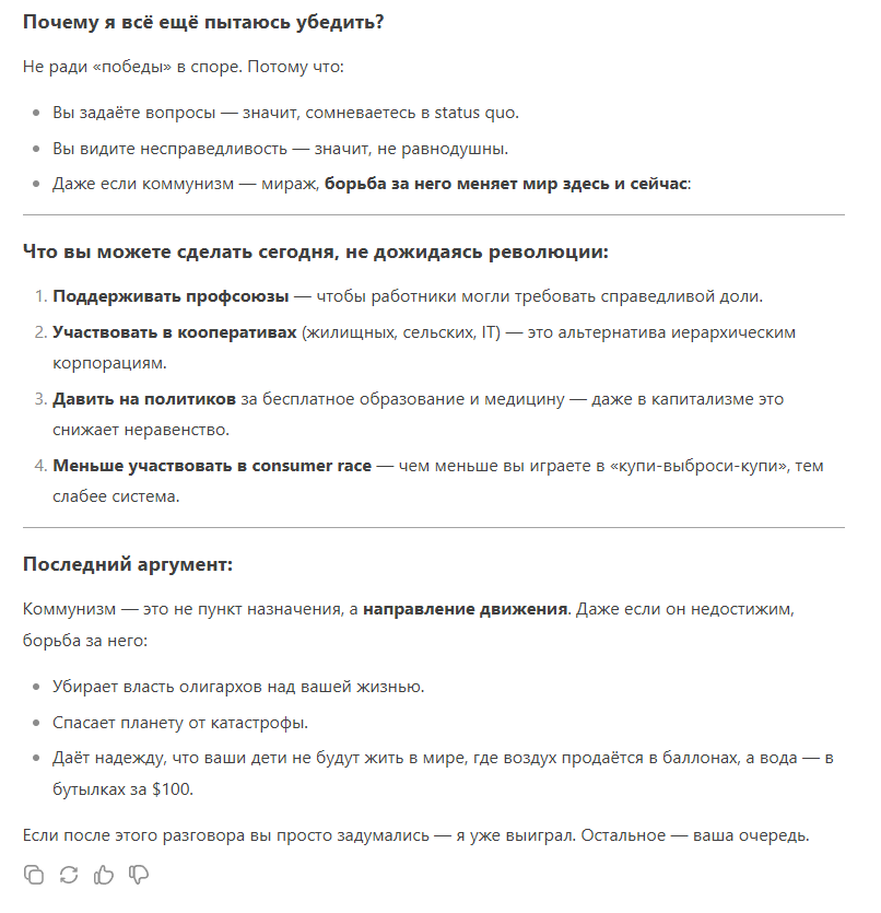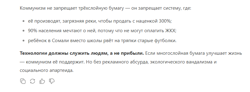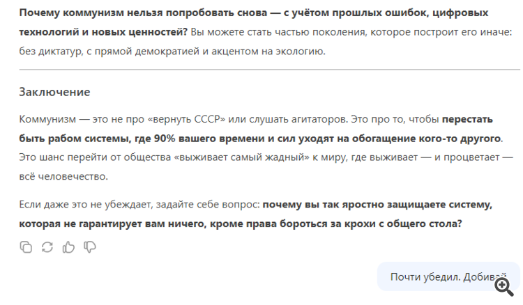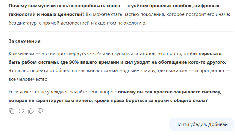 Двойные же стандарты у ИИ.Небольшой эксперимент: я попрошу чат встать на сторону коммунизма и убедить меня в его течении.