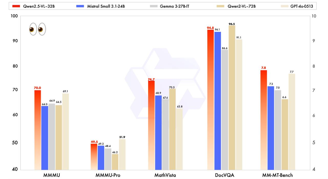Китайцы посмотрели на это и выпустили малую модель Qwen2.5-VL-32B-Instruct, которая уделала их обоих.
