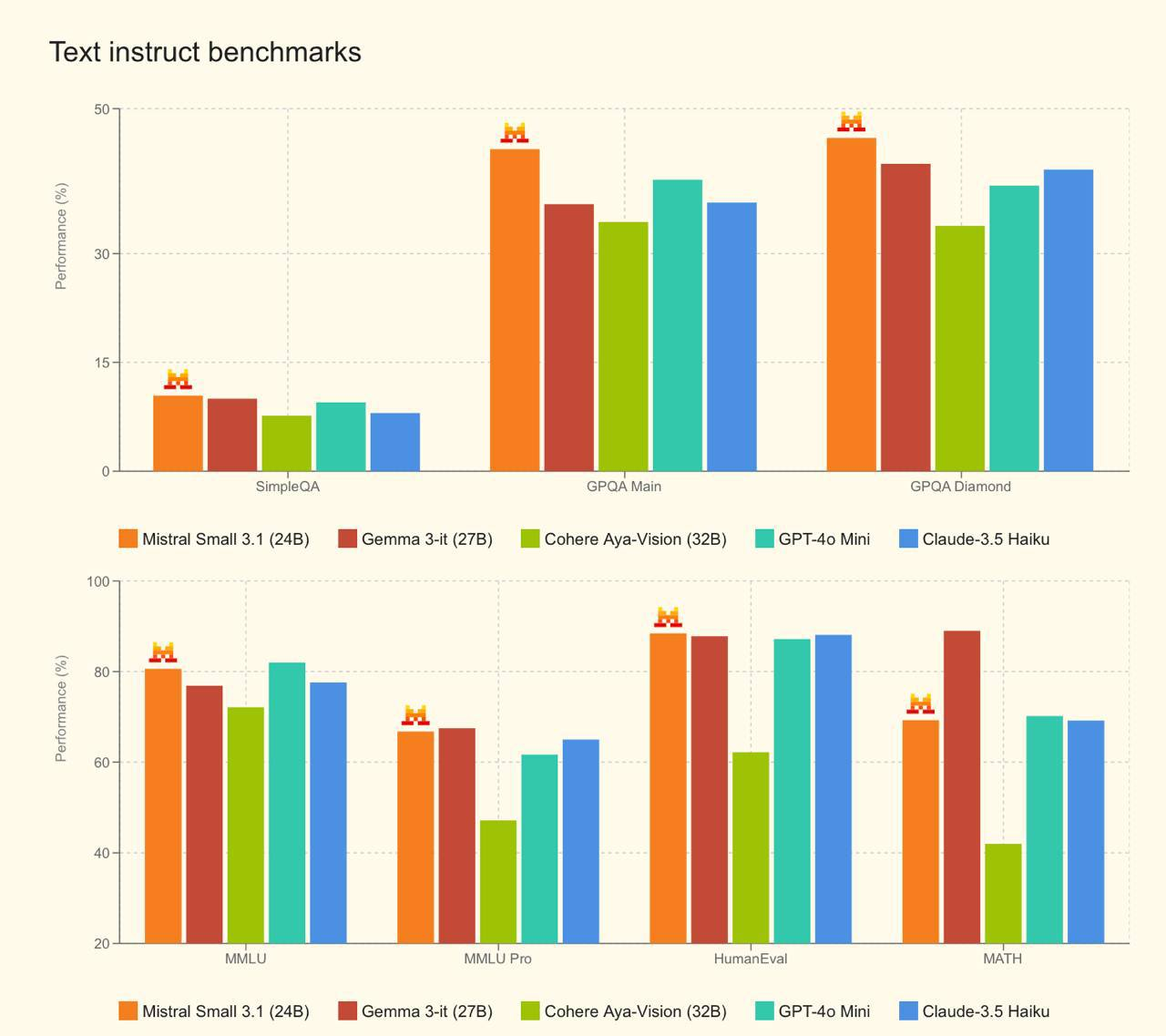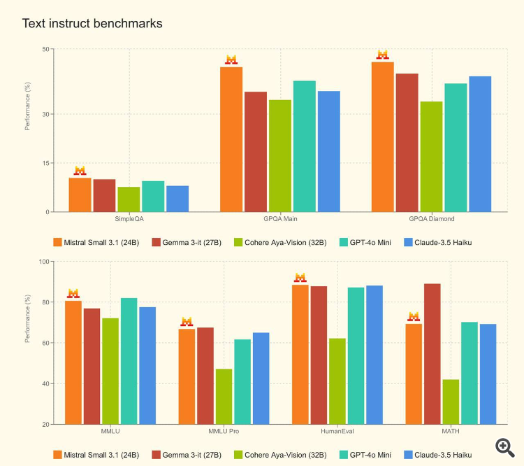 И вот французы выпускают Mistral Small 3.1, которая по бенчмаркам превосходит гугловский малый ИИ.