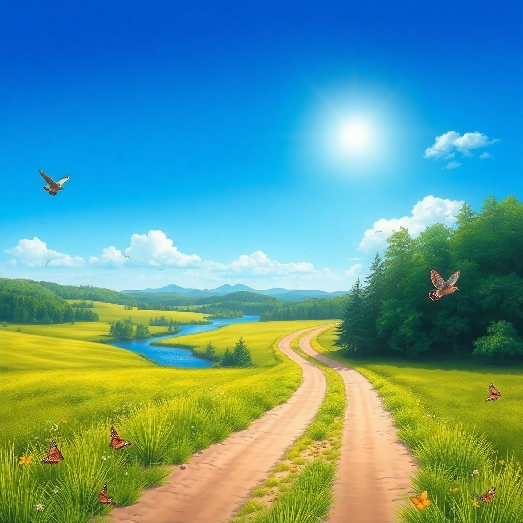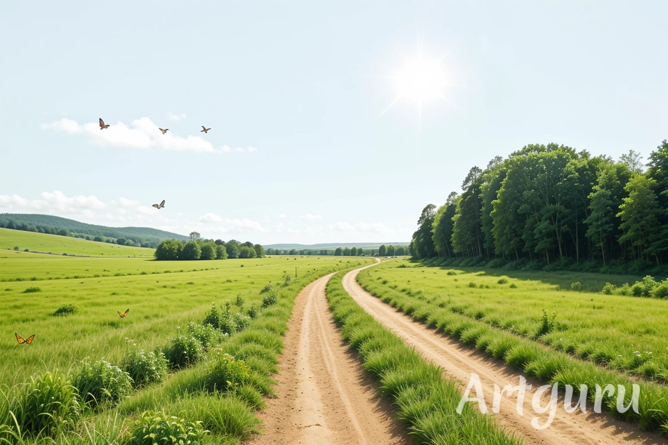 На каких-то двух бесплатных сайтах попробовал сгенерировать картинки. ) первый понял, как надо, второй речку забыл нарисовать.