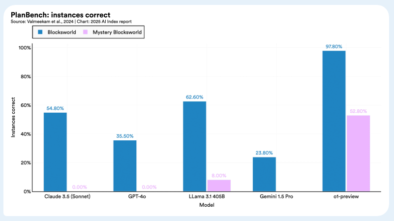 Модели ИИ превосходны в таких задачах, как задачи Международной математической олимпиады, но все еще испытывают трудности со сложными контрольными показателями рассуждения, такими как PlanBench. Они часто не могут надежно решать логические задачи даже при наличии доказуемо правильных решений, что ограничивает их эффективность в условиях высоких ставок, где точность имеет решающее значение.