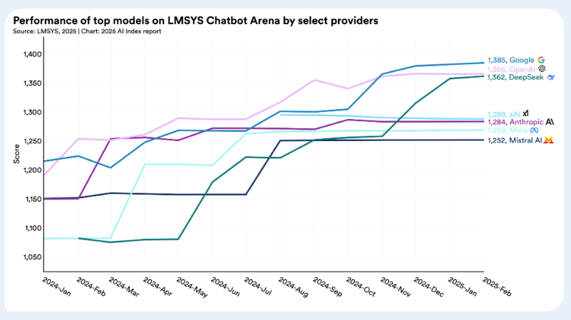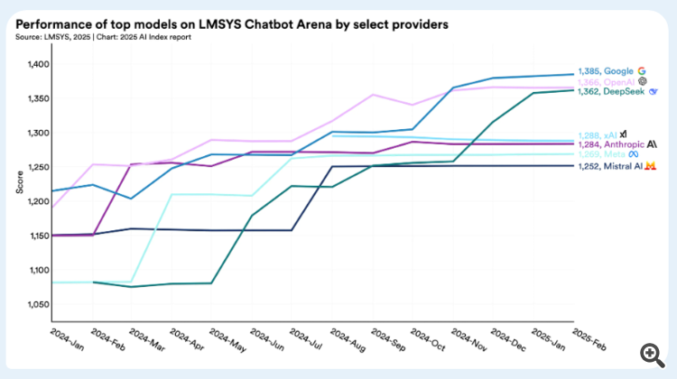 4. США по-прежнему лидируют в производстве лучших моделей ИИ, но Китай сокращает разрыв в производительности.