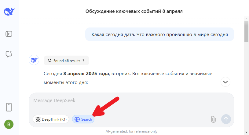 Каждый ИИ я сопроводил скриншотом. На каждом продемонстрирована кнопка "поиска". Активируете её и ИИ ищет в интернете.