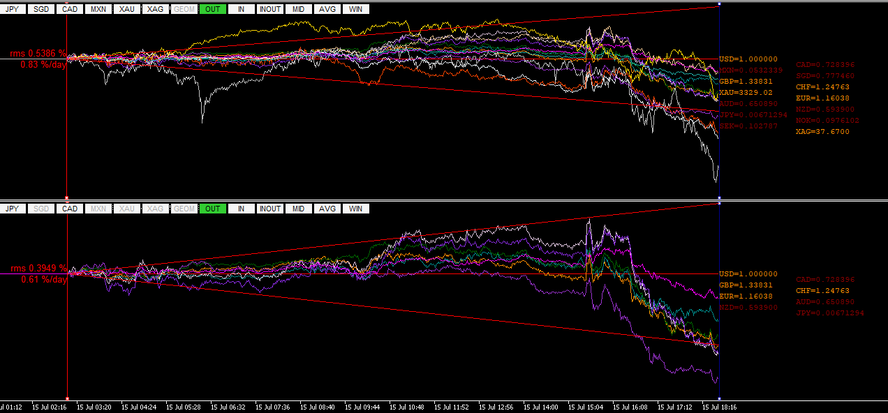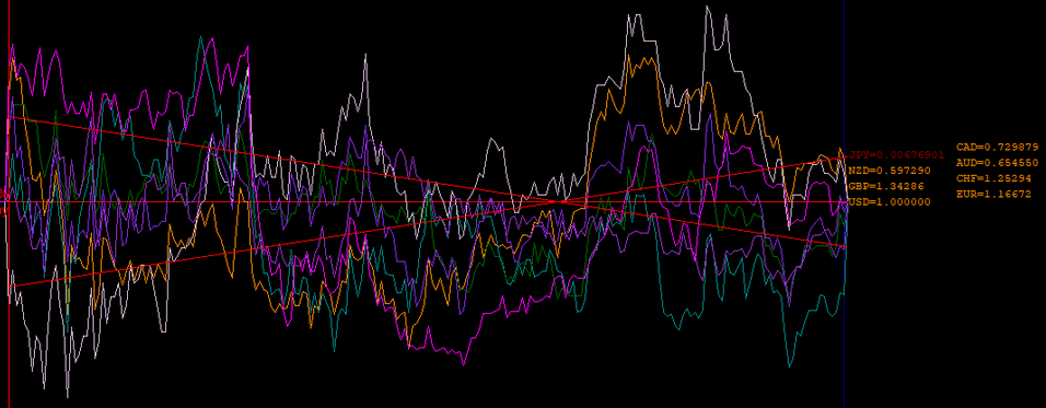 но ради эксперимента - максимальный разлёт к 19:00 между USD и JPY. Просто день такой. Следующий близкий кандидат CAD и JPY
