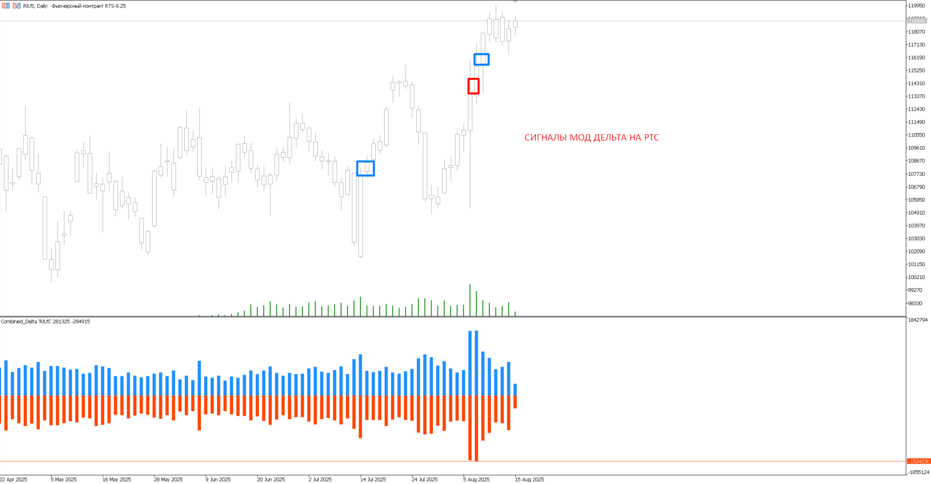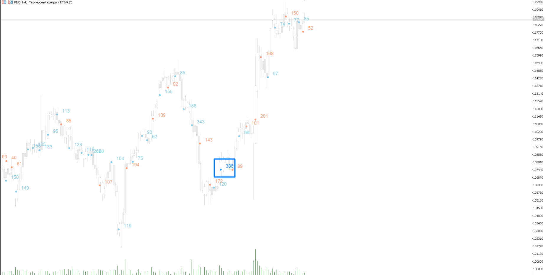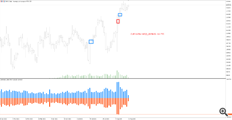 вот к примеру я не вижу такой возможности так как на несколько биржевых данных нет истории без которых не возможно узнать намерения крупных лимитов которые манипулируют ценой после больших объемов против сигналов покупок или продаж или же по их направлению , и инструмент инструменту рознь вот моя мод дельта работает на ртс уже пол года как часы а на других не работает если брать доступные исторические данные скрин с сигналами прилагаю , даже крупная сделка ни всегда работает а ее можно использовать как отправную точку для манипуляций . ОБЪЕМЫ ДОСТУПНЫ ИЗ ИСТОРИИ НО ЭТО ТОЛЬКО ЧАСТЬ А ОСТАЛЬНОЕ ТОЛЬКО В РЕАЛЬНОМ ВРЕМЕНИ . даже в квике нет этих данных по тикам по загруженной истории за день только минимум для минутных баров на которых тысячи сделок и не возможно узнать какие из сделок были совершены против крупного лимита