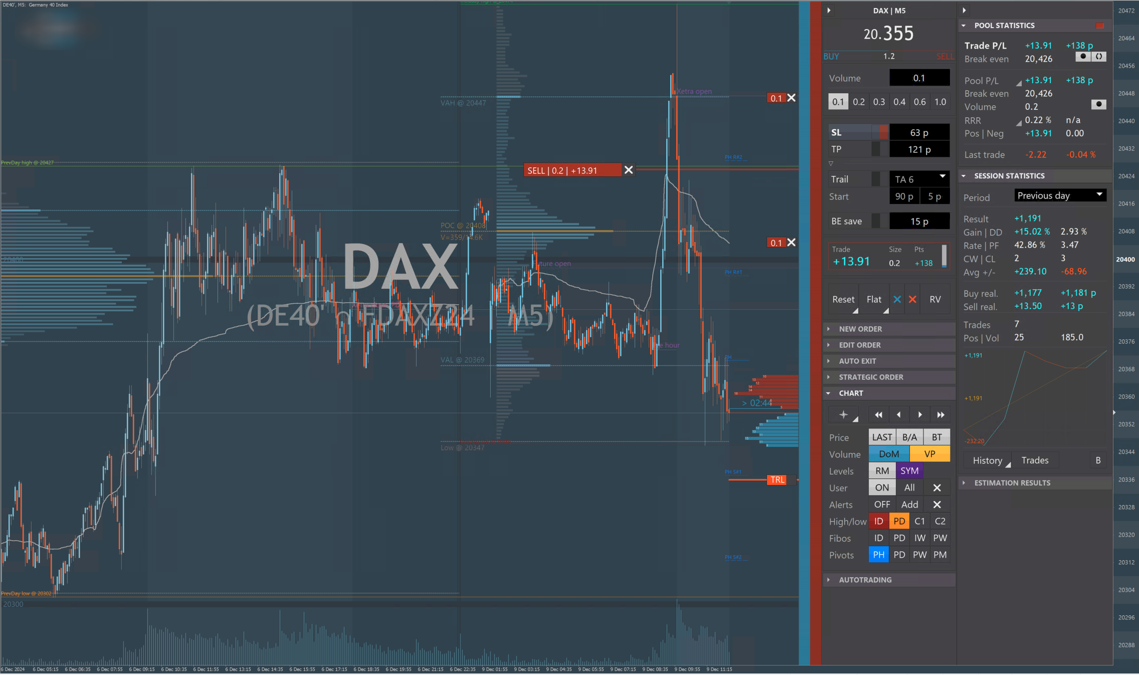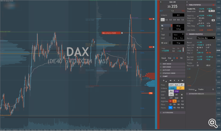 На скриншоте показана торговля CFD, но с отображением объема базовых фьючерсов. Поэтому также есть реальная книга заказов и профиль объема.