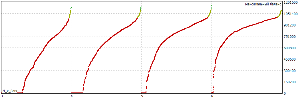 Закончилась оптимизация ещё одной простой стратегии - x баров подряд - входим в рынок, но она с фиксированным стопом и тейком.