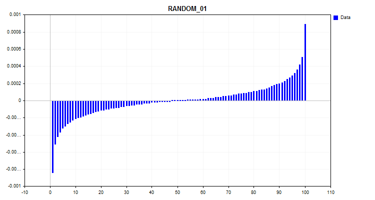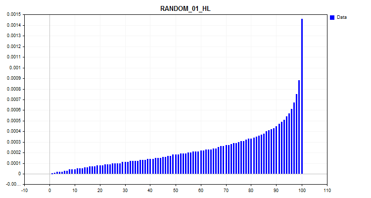 Вот ещё по среднему значению в проценте наглядно видно распределение High-Low минутного бара. 1 столбец - 1% наблюдений, упорядоченных по возрастанию - за этот период посчитано среднее значение.