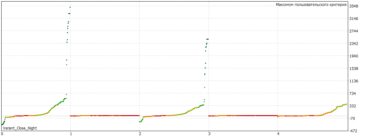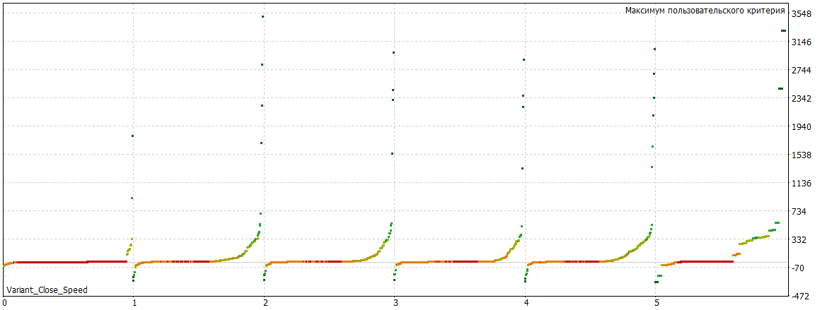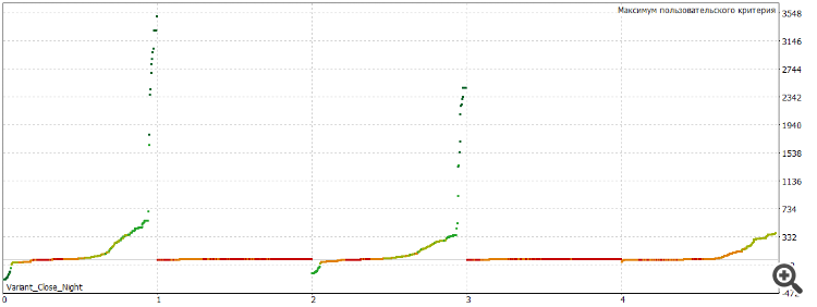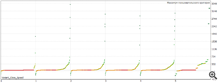 Хорошо бы сделать трёхмерный график для анализа результатов в 3-5 измерениях - два измерения добавить цветом и символами, сделать его настраиваемым. Сейчас же трехмерный график это тот же двухмерный с двумя плоскостями для переменных - добавление больше пространств и делание интерактивным анализ облегчит работу с результатами оптимизации и будет дополнительным конкурентным преимуществом продукта MT5.