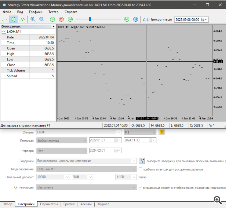 Запускаю в тестере одиночный проход советника на OHLC таймфрейм М1