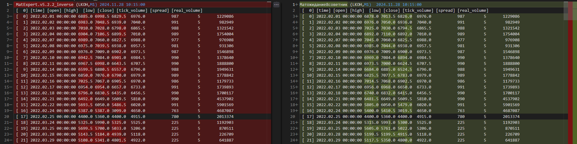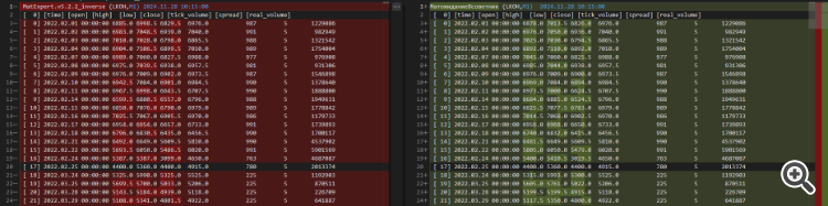 Сравниваю полученные бары и вижу, что бары с одинаковой датой имеют разные цены OHLC , за некоторым исключением.