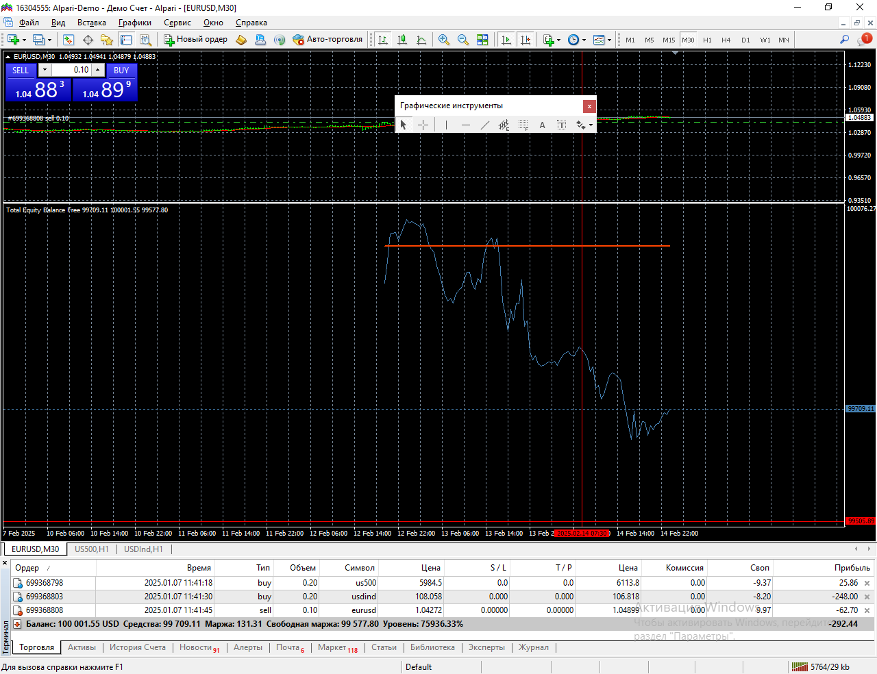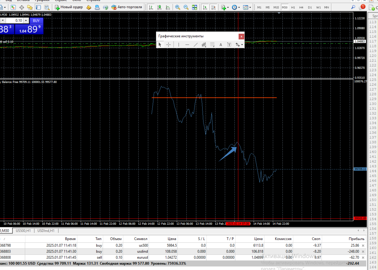 предварительно входа от уровней 99700 99400 99100 теми же стартовыми объемами выход тралом профита или пересечения средней (красной линии) - баланса.