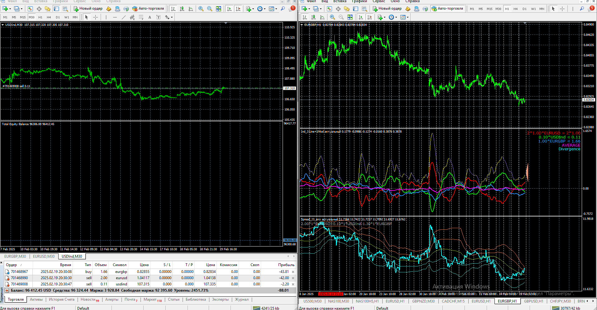 также написал для вас свободный треуг для отсмотра и рисования через индикатор эквити Хирурга через открытые позиции: CL-XRB-HO=2^1^1 (или 3:2:1), но по сути лоты в них определяются так же. Чтобы размер одного инструмента был равен суммарному размеру двух других встречных