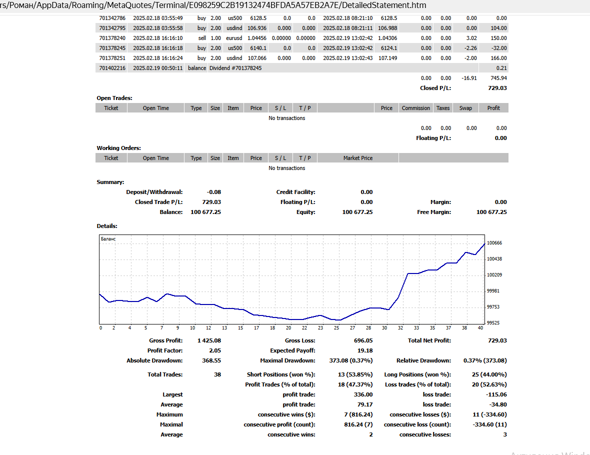 это он же - также продолжение теже коэффы не было перезаходов - были перезагрузки терминалов и компов поэтому график эквити начал вновь рисунки сначала старта терминала (после перезагрузки) - продолжение рисования. На тех же значениях