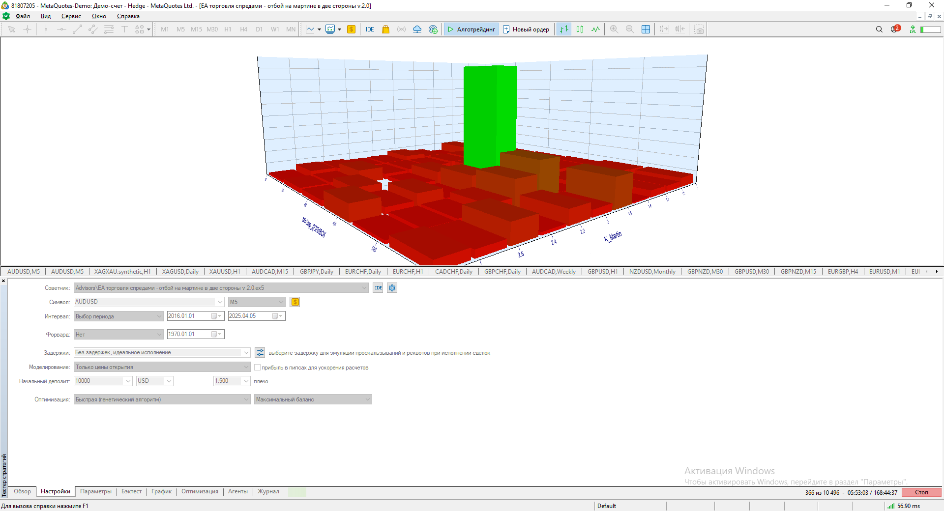 на четырех агентах через быстрый перебор значений параметров при оптимизации