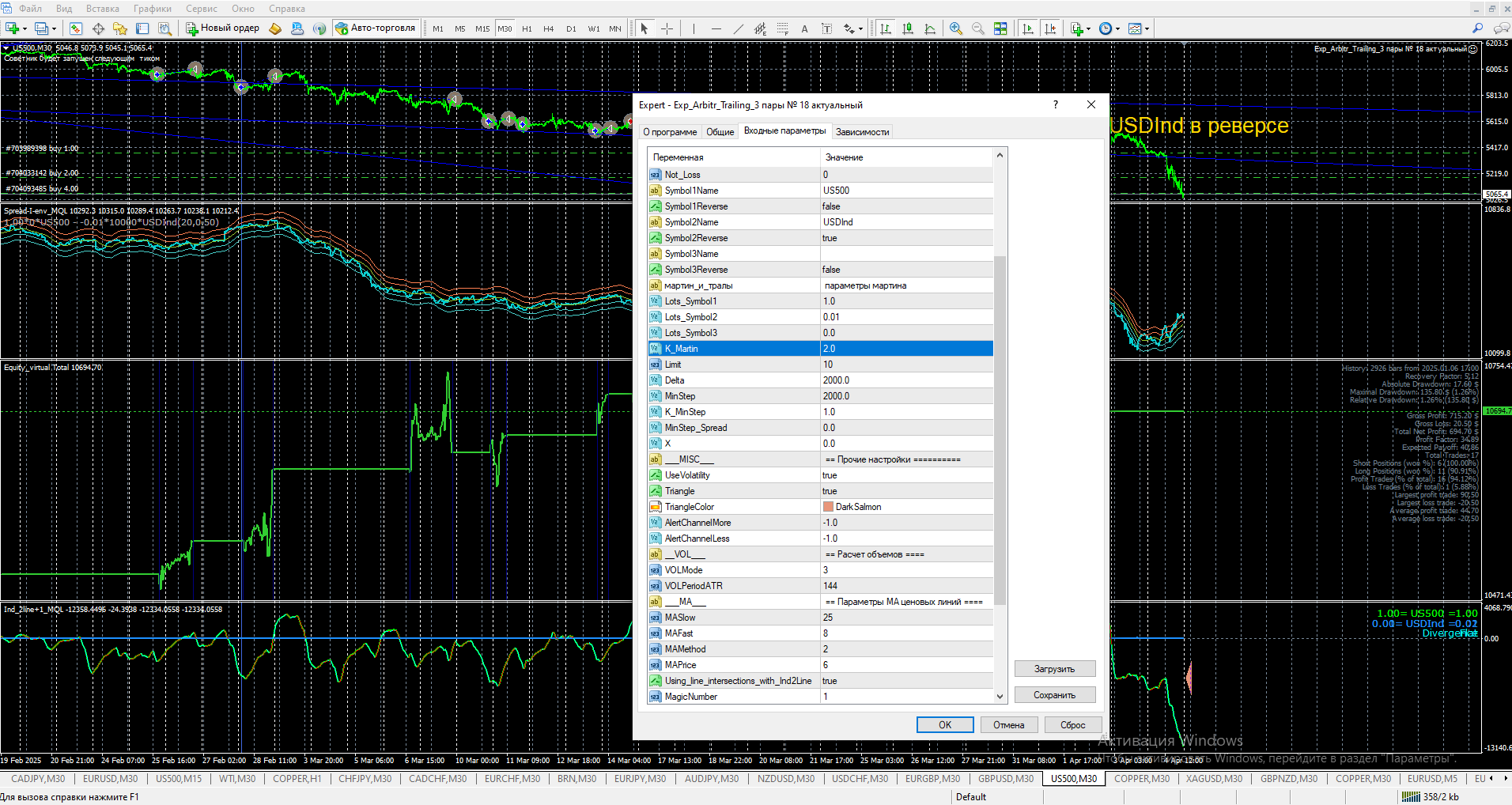 Блин, ну и каша. Тут и без реала понятно, что всё это работать не будет. Взял кучу случайных символов, с огромными лотами и полгода ждешь, когда они в плюс выйдут. Потом называешь это мега синус и пытаешься впарить на форуме