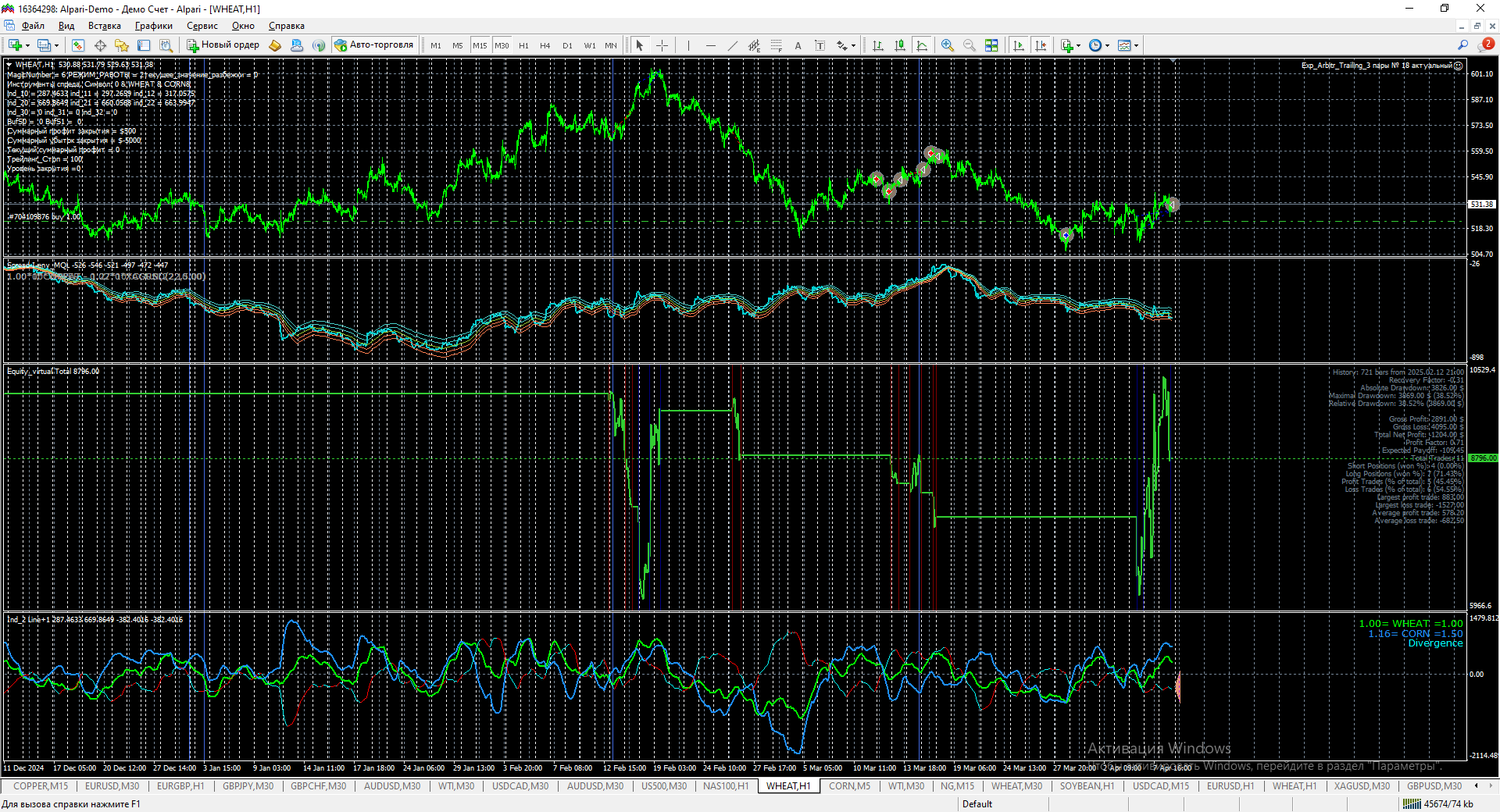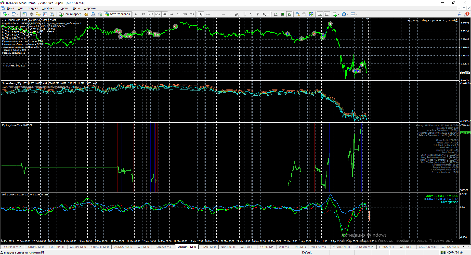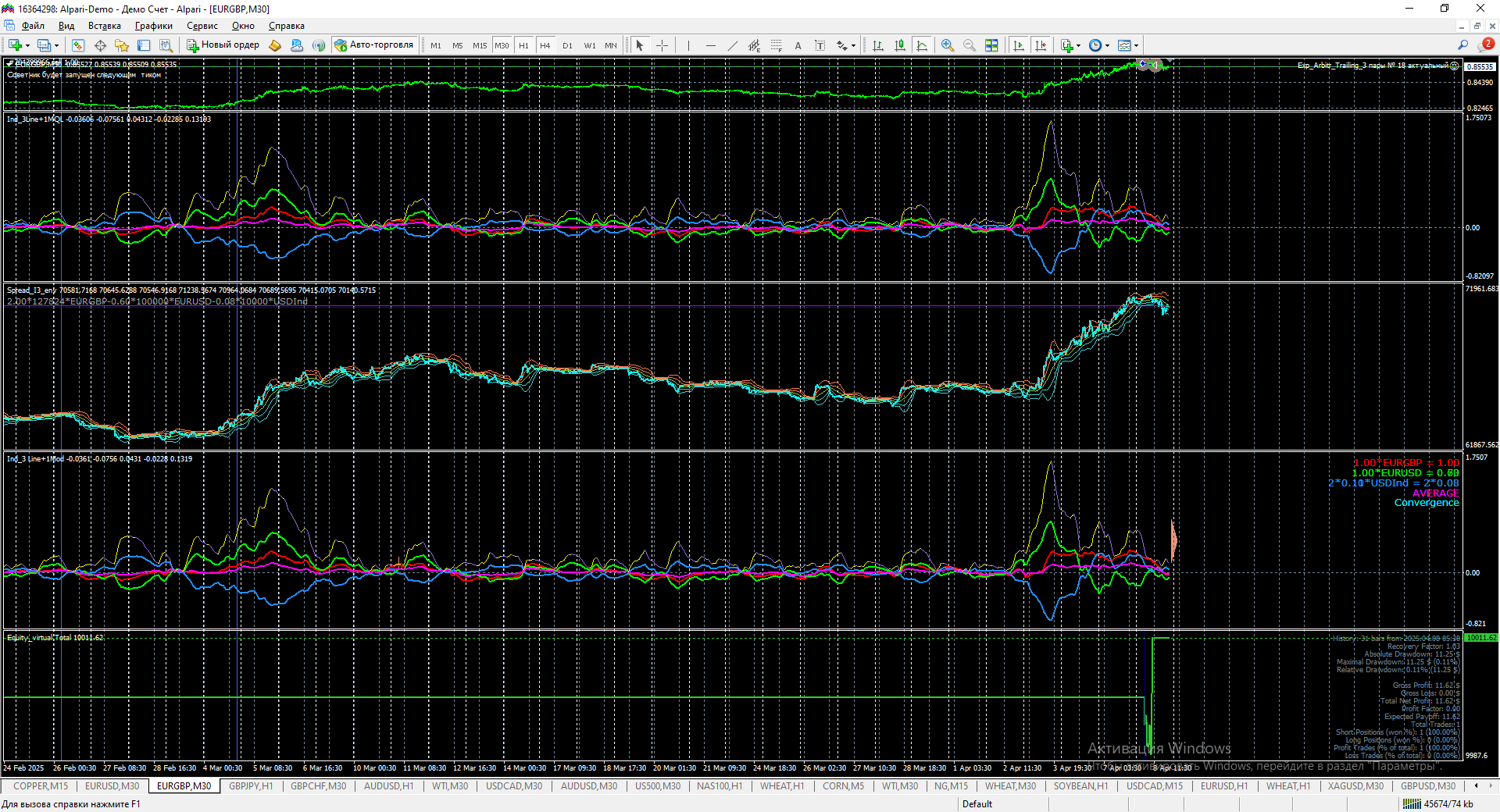 1.1. открыли синус через открытые позиции его наблюдаете через индикатор эквити. на первом счете.