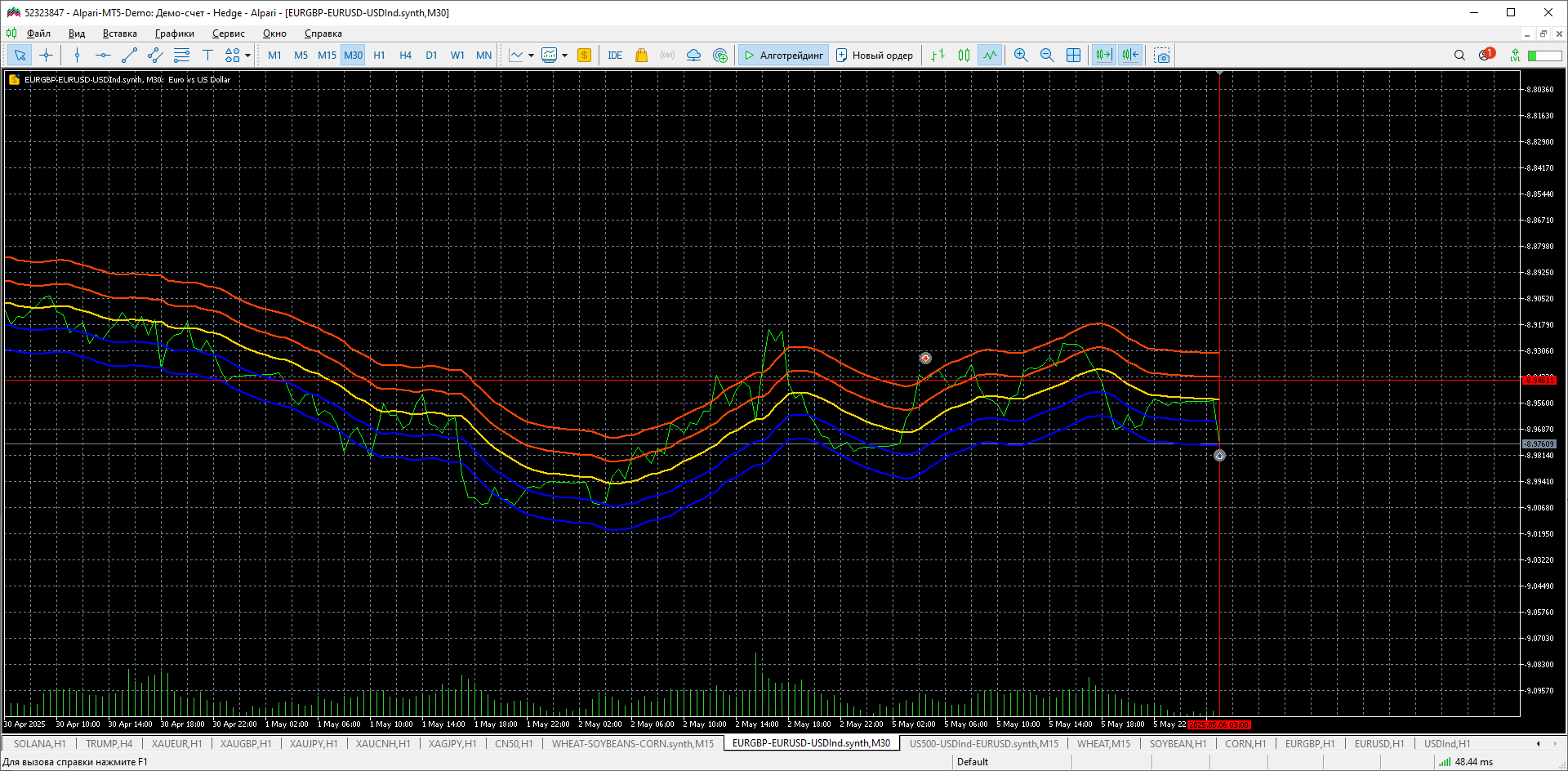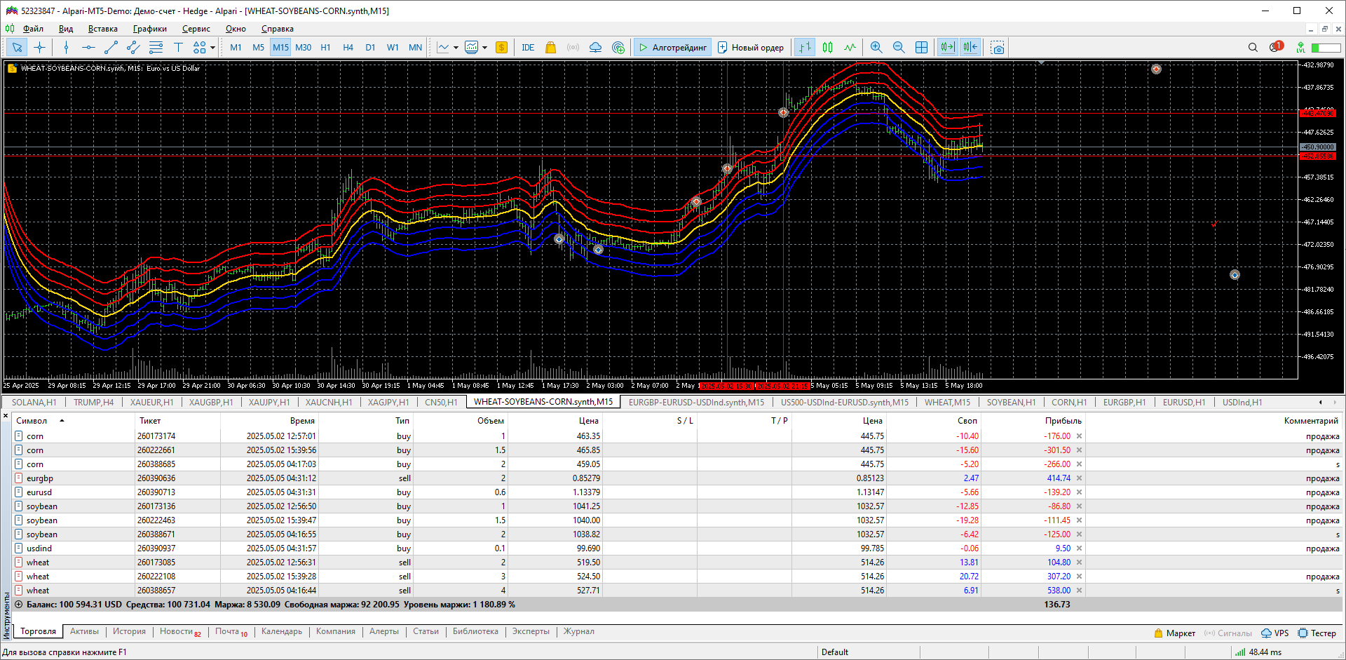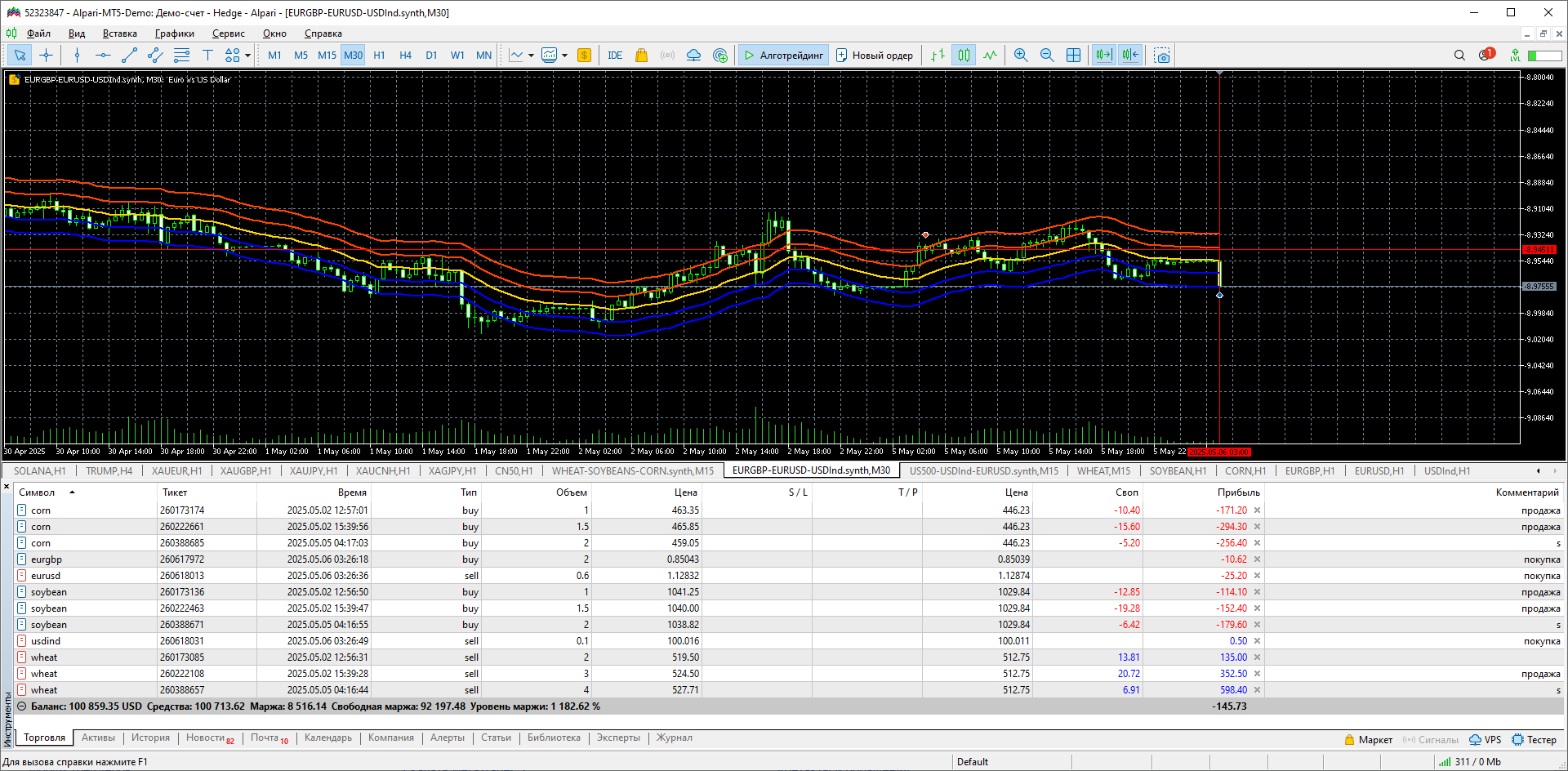 Два синтетика движутся зеркально. инструменты не повторяются. эквити в синусе.