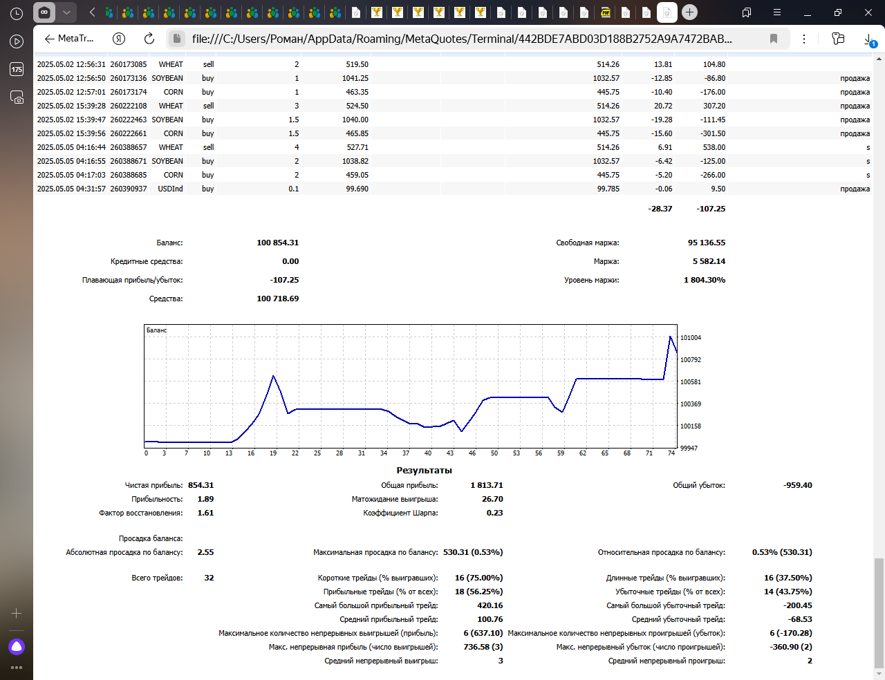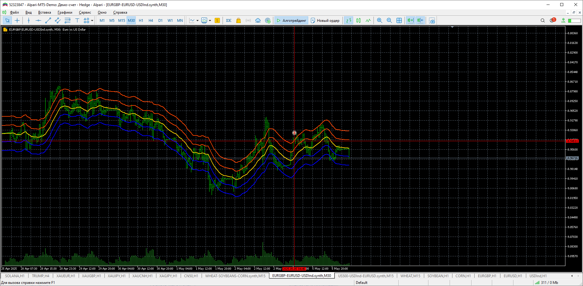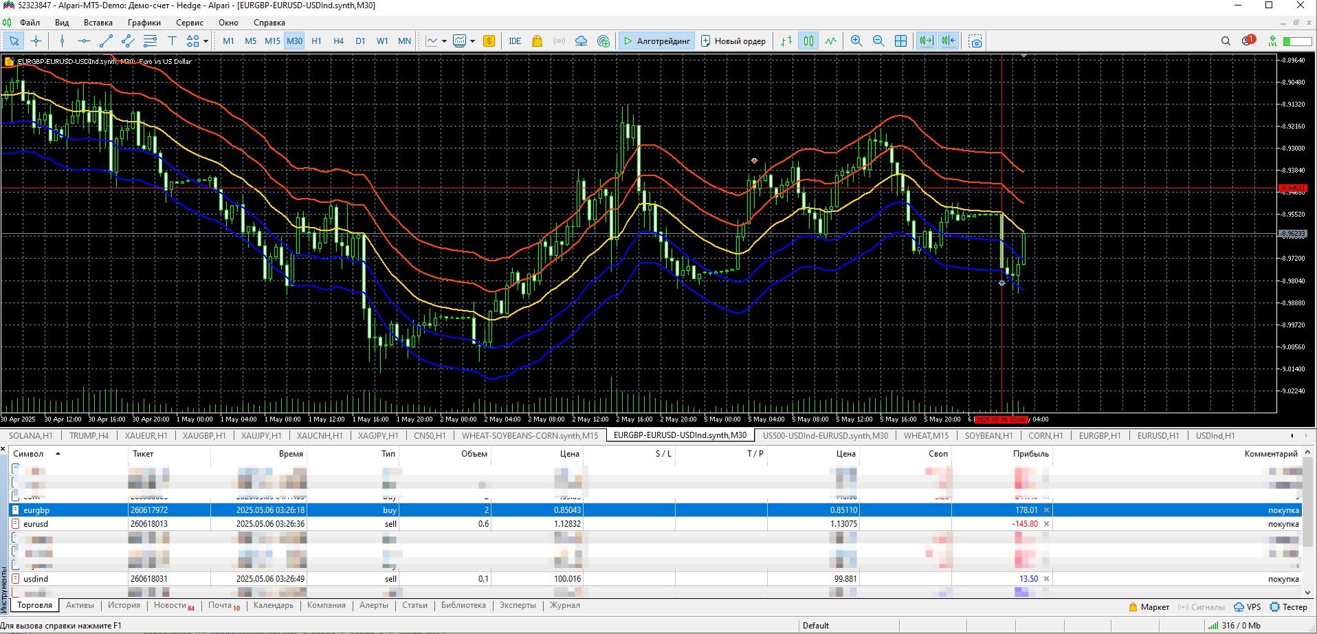 Два синтетика движутся зеркально. инструменты не повторяются. эквити в синусе.