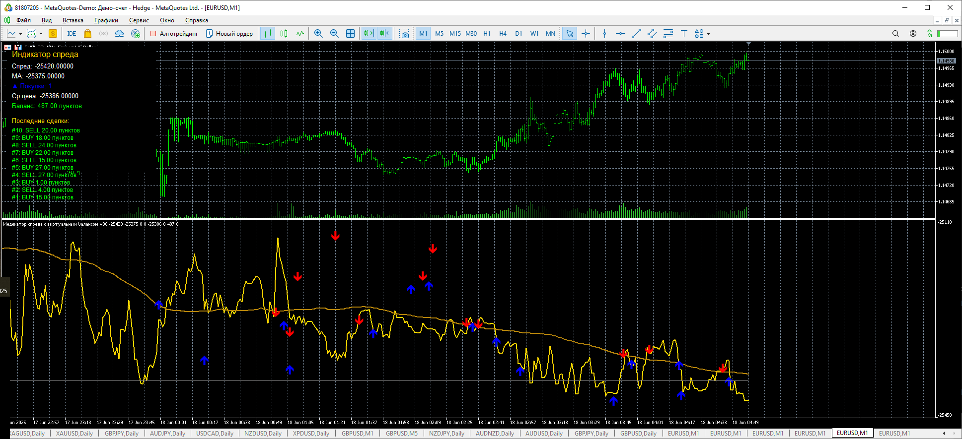 эквити от высокочастотного синуса. это не индикатор это торговля по синусу в профит.
