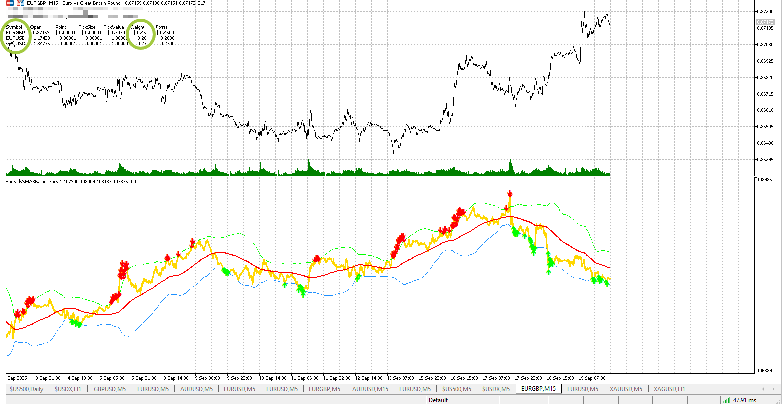 2. Формулы — как считать спред, SMA, полосы, приведение в денежный балансСнижение рыночного риска по направлению: открывая противоположные позиции в коррелированных инструментах (или два направления с учётом счетов), ты частично хеджируешь общерыночный риск (большие движения в USD, новости и т.п.) — P&L становится тесно связан с разницей цен (spread), а не с абсолютным движением каждого инструмента.