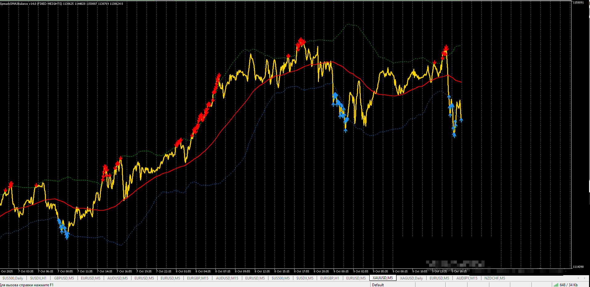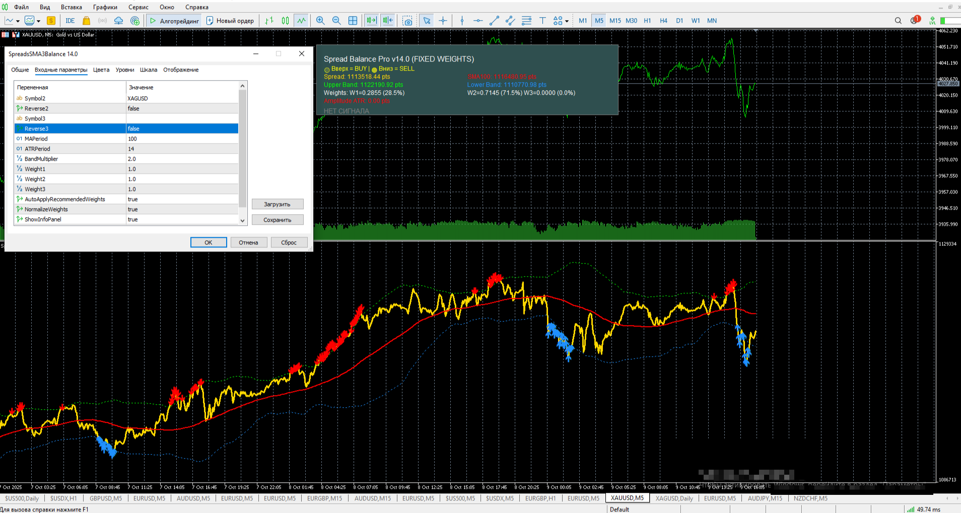 И когда значение вышло за пределы отклонений этого болинджера открываете ордер к средней, а когда сразу цена не идёт куда нужно, то усредняете.
