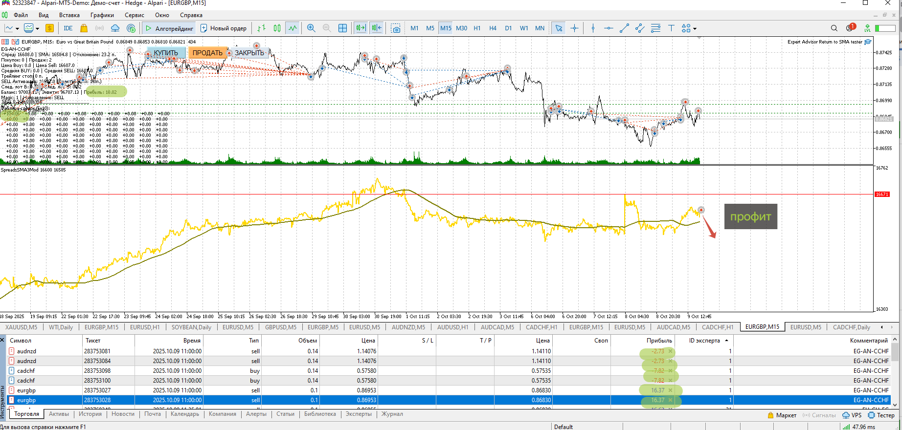 вот слева таблица почему нули терминал перезагружал показывает текущие по позициям, по каждому перевороту или выходу все позиции в профит (по направлению)