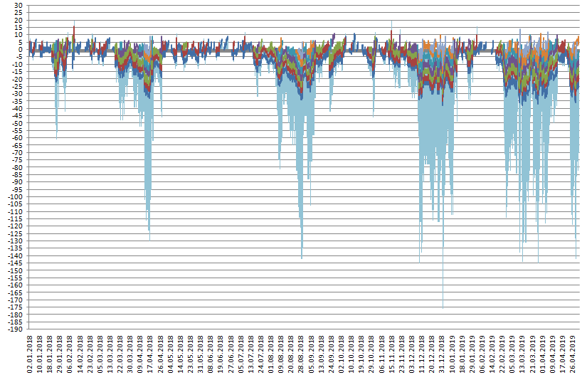 вот и ок и надо (ИМХО, не навязываю - это тема ветки) такие темы крутить и рекомендовать как избежать "трендовых вылетов"... ) и подбором символов и коэффициентов! горизонтальные уровни тоже работают.