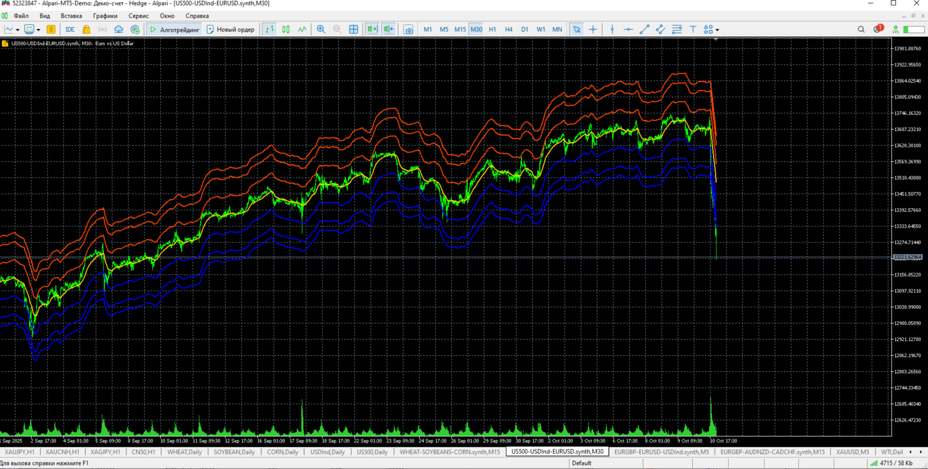 торги эквити портфеля на коэффициентах лотах! Актуализировать надо и символы и объемы.... (по сути переворотная торговая система). Представлена на рисунке выше - через пользовательский символ. Коэффициенты н е актуализированы!