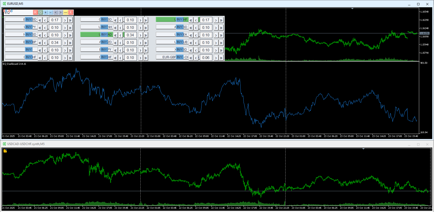 Синтетические графики РАЗНЫЕ, хотя формулы одинаковые {"USDCAD", 0.34}, {"USDCHF", -0.17}: