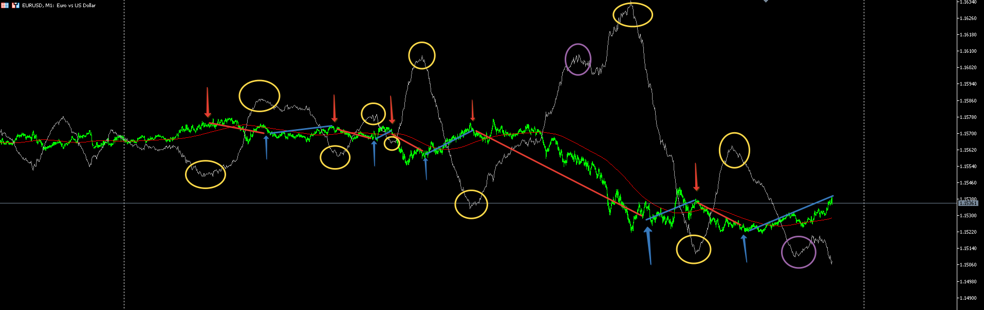 Серенькая линия размашистая, ловить её разворот (сближение с красенькой) немного проще. На картинке 2 сложных момента из 12.
