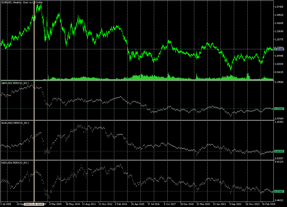 После кризиса 2008 идет деградация, доллар деградирует по понятным причинам слабее. Поэтому валюты идут вниз. Налицо глобальный тренд.