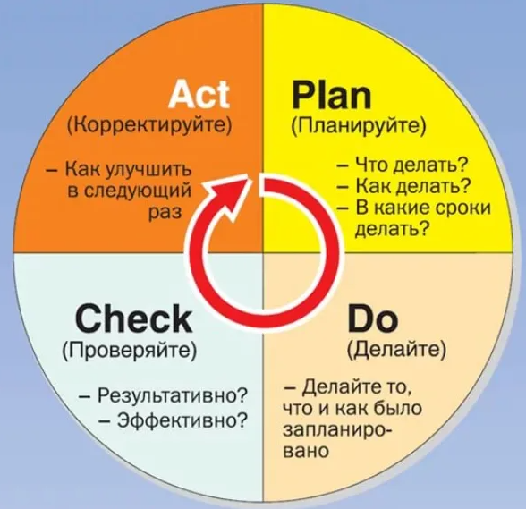 план недели, план дня, исполнение, анализ результата, коррекция.