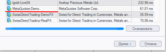 Посмотрите как он выглядит, в заголовке написано: "Select a more suitable trading server:"