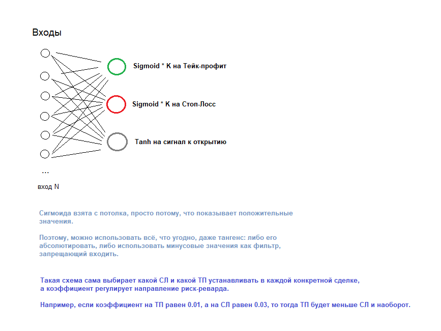 Данная нейросеть выступала в качестве фильтра для уже имеющейся простой, но грубой торговой стратегии: