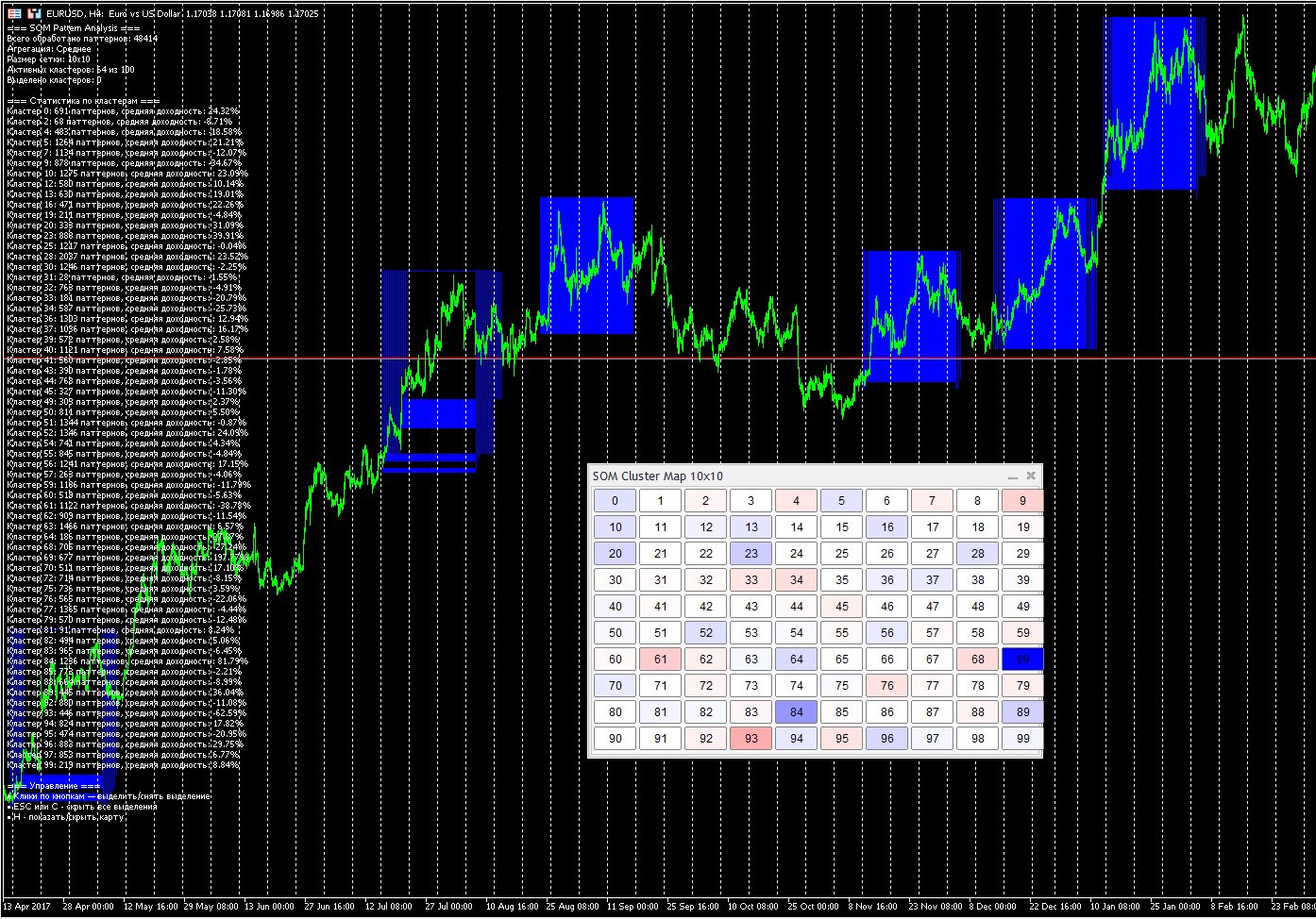 2) На примере выше - выявление похожих паттернов (мечта для ручных трейдеров-новичков, которые сталкиваются со сложностью поиска общеизвестных ДЦ-паттернов или паттернов, где наставники не могут объяснить, как они их отмечают).