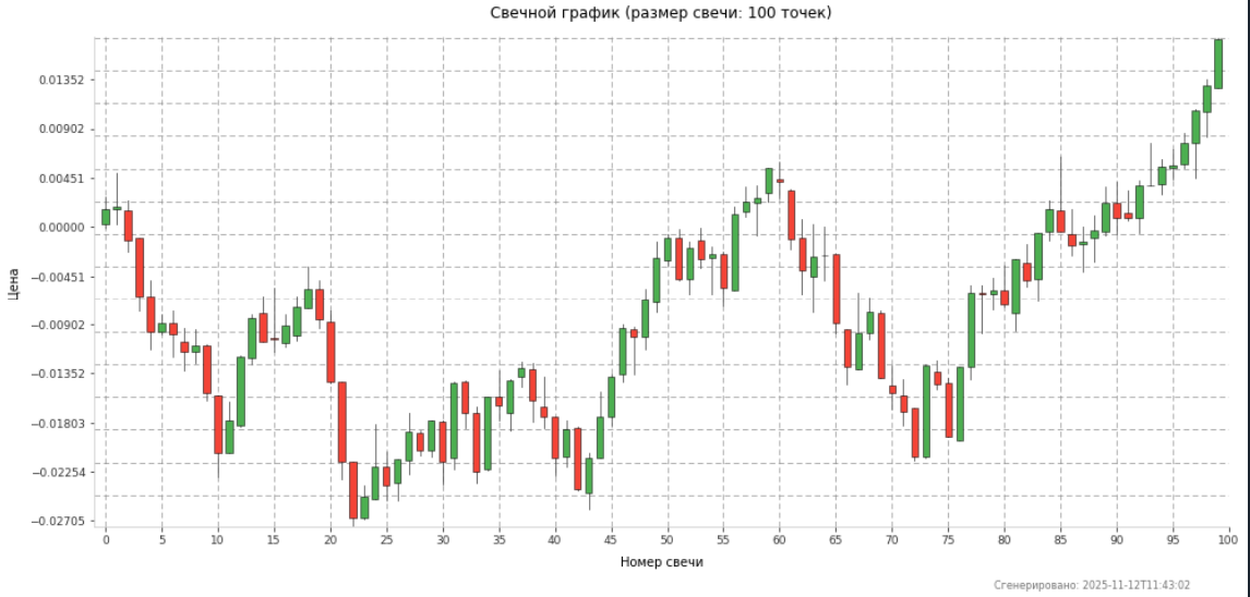 С помощью генератора случайных чисел создал генератор случайных приращений (ГСП) и потестил его, обернув в свечи.О результатах сказать можно следующее: