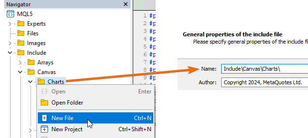 Я хочу добавить новый mqh файл в папку с индикаторами (или подпапку):
