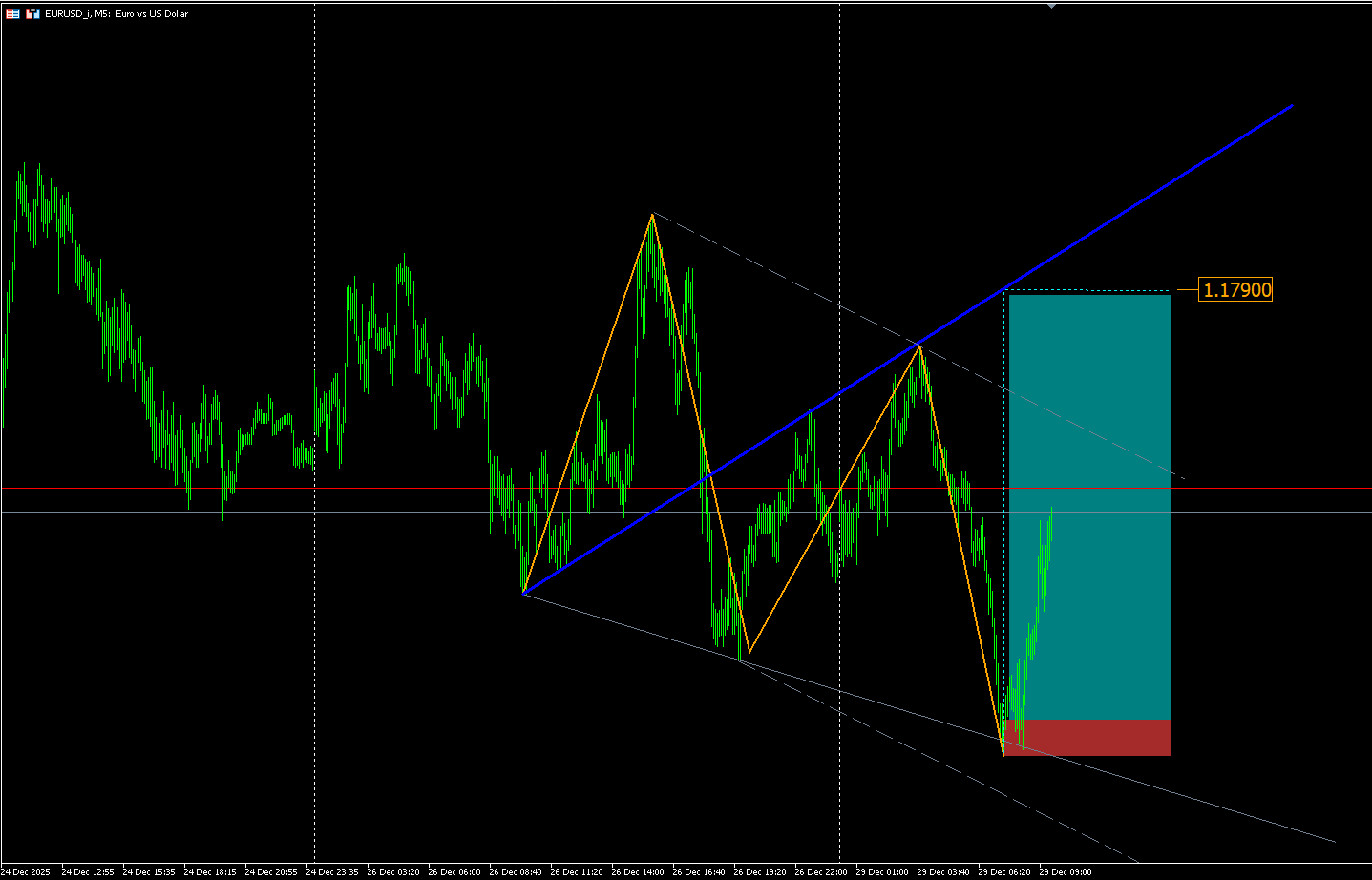 На EURUSD не совсем идеальная волна Вульфа наверх: