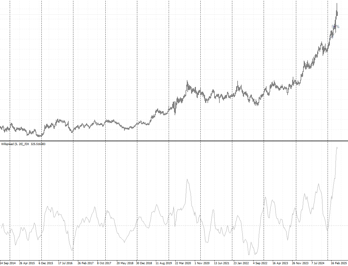 Но дело не в этом. а в том что по моему мнению цена золота слишком завышена. что и показывает индикатор willspead.