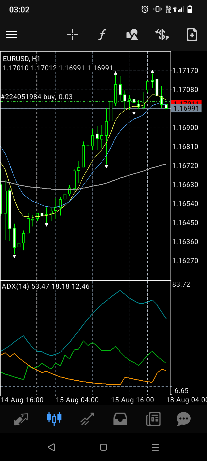 Вот и точка входа появилась. Как вы видите, евро и шифа пересеклись, евро вверх, шифа вниз. Сейчас откат (Convergence). Открываем позицию на buyдля евро и sell для шифы.