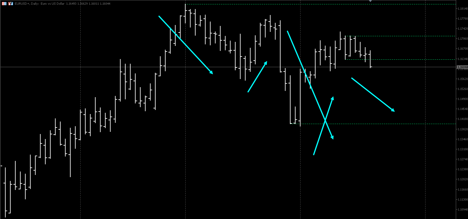 Вот Дневной график , Евро. Нисходящий тренд, в нем откат