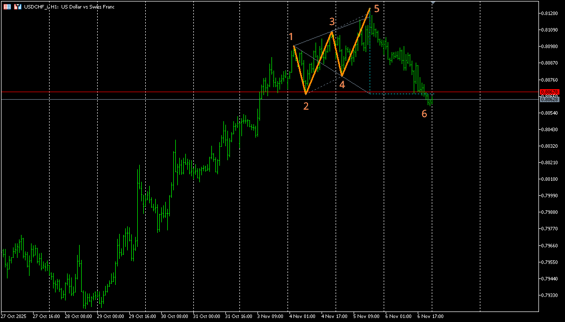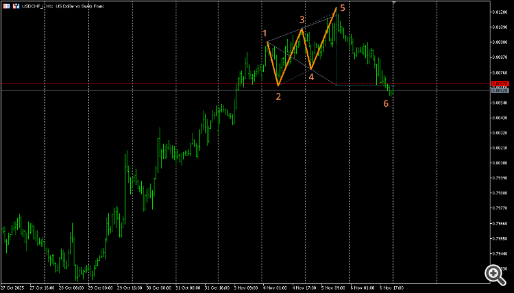 На франке красивое завершение узкого тренда в самый раз подходящими для этого дела волнами Вульфа в своих почти идеальных пропорциях