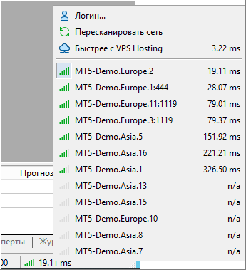 Узнайте адрес/IP сервера у форекс-дилера, для демо и реала это могут быть разные серверы.