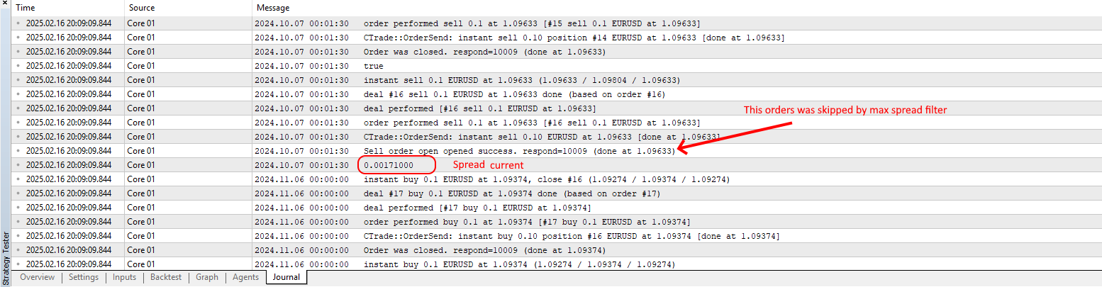 При тестировании советника в тестере стратегий в режиме "Все тики" на таймфрейме D1 по непонятной причине спред увеличивается больше заданного
