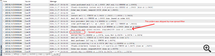 Текущее значение спреда во время открытия ордера. Должно быть 10 пунктов, но оно увеличивается до 171 пункта