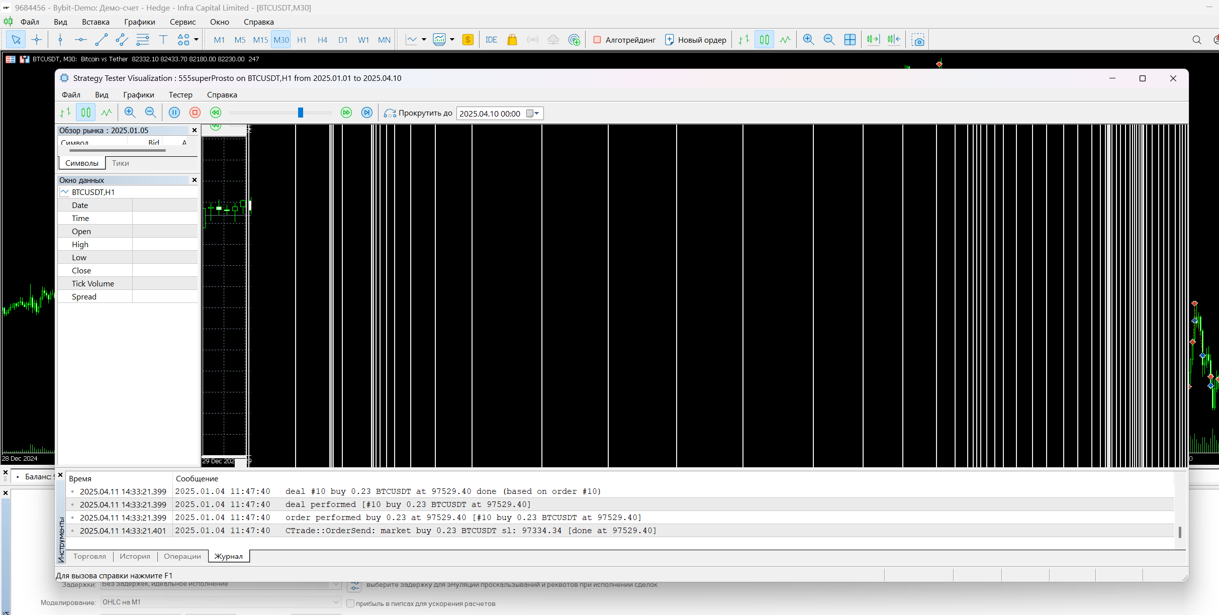 - запускаю в тестере с визуализацией