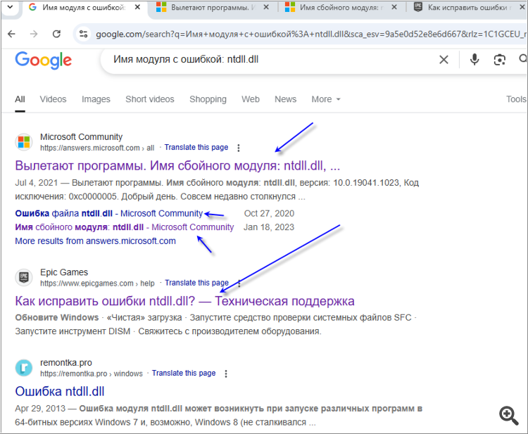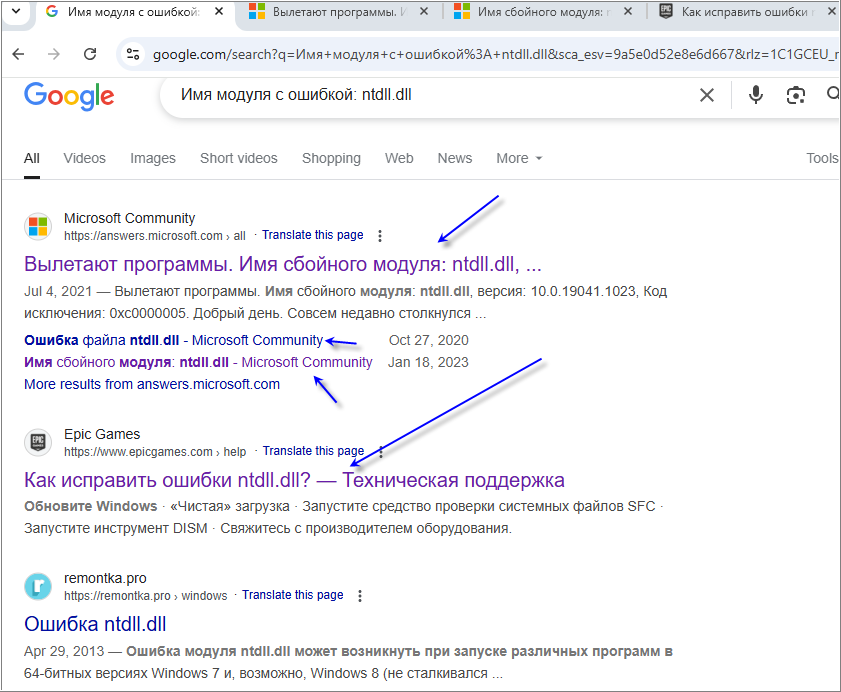 Я просто погуглил (ввел в гугл следующее: Имя модуля с ошибкой: ntdll.dll) и там сразу много ссылок от Microsoft ... с одной из ссылок:
