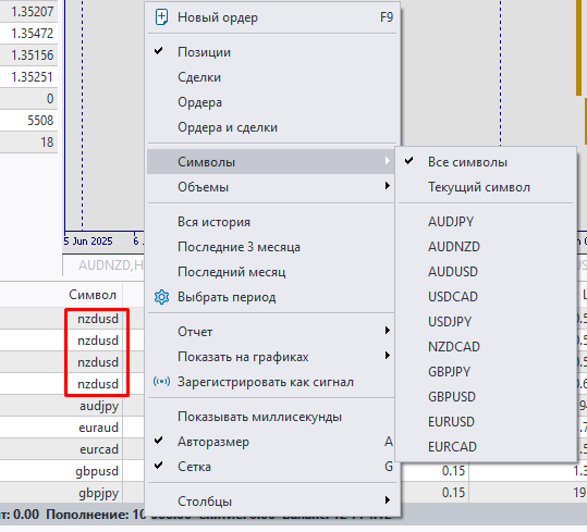 Но кроме всего у меня в списке символов отсутствует как минимум один символ NZDUSD по которому есть сделки