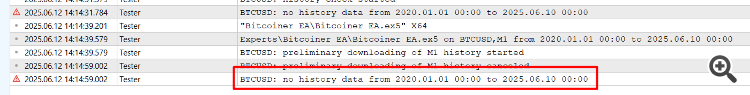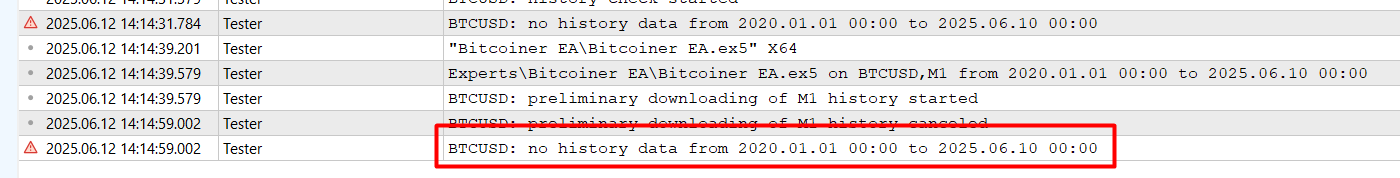 откидываю неуспешный код инициализации INIT_PARAMETERS_INCORRECT, после чего не могу запустить тестер с визуализацией, возникает ошибка no history data